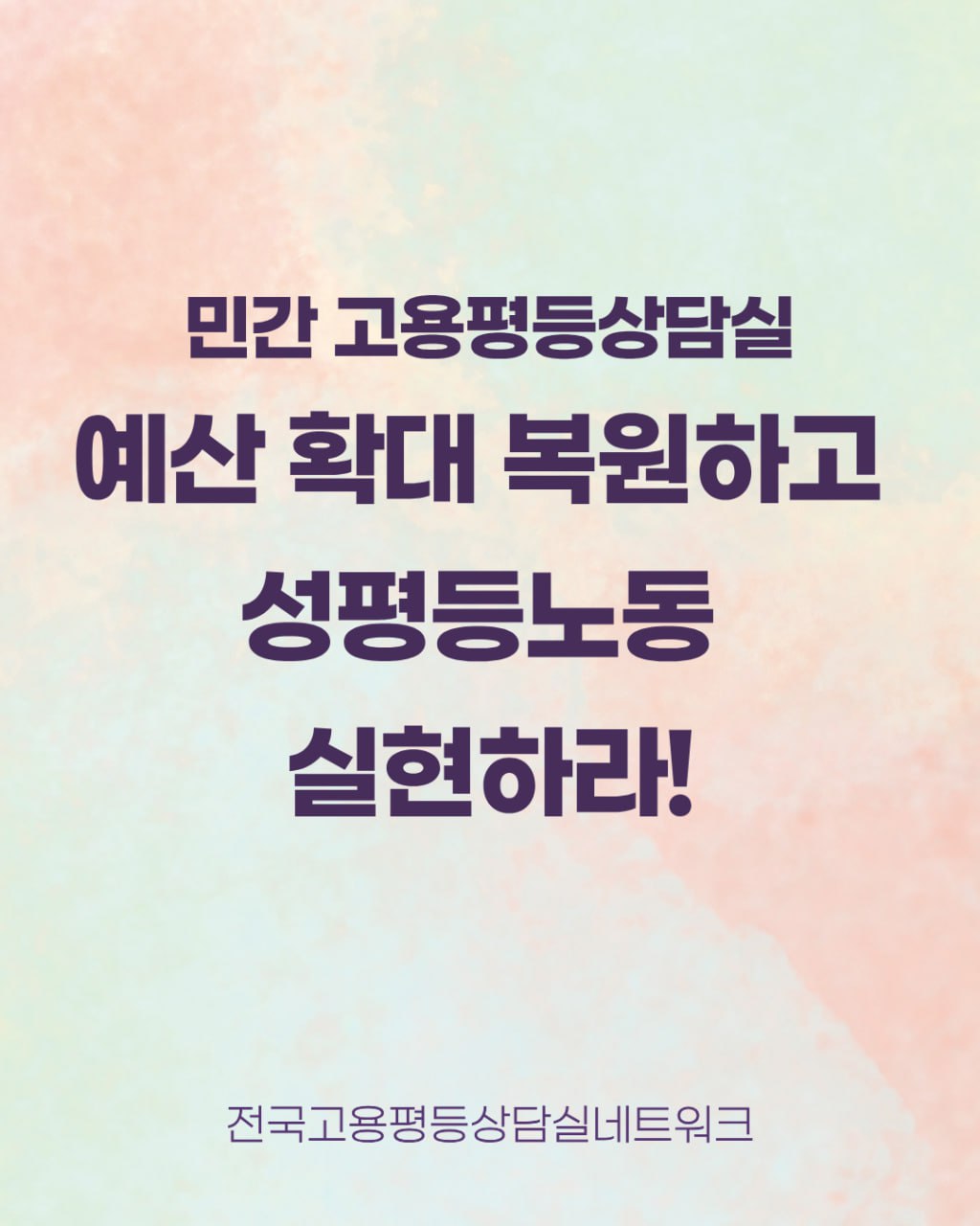 | 국정과제인 민간고용평등상담실 완전 복원, 확대가 필요합니다!! (0) | 2025.11.26 |