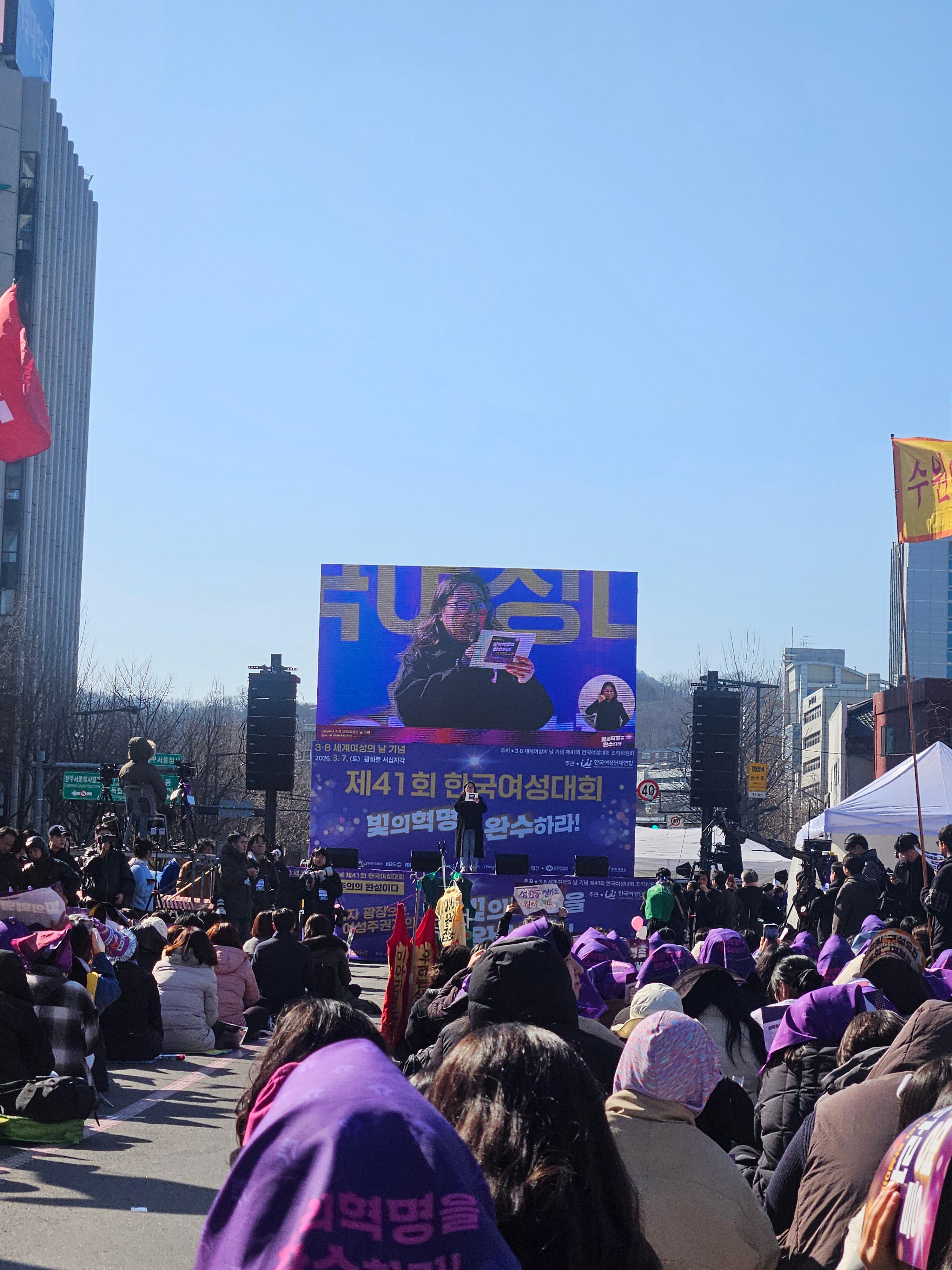 3.8 세계 여성의 날을 맞이하여 안산여성노동자회는 회원들과 함께 광화문 서십자각에서 진행된 제41회 한국여성대회에 참여했습니다.