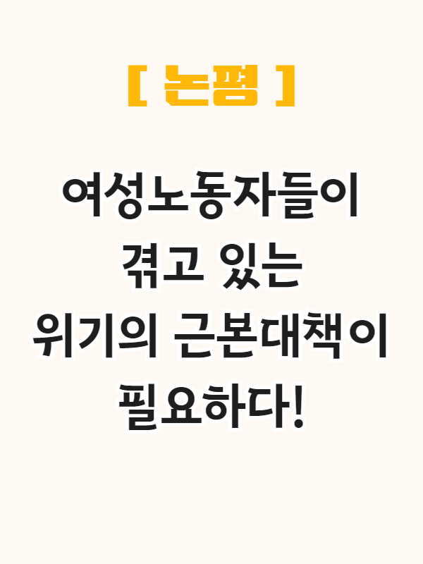 - 금일 발표된 여성고용대책은 코로나19 위기를 맨몸으로 헤쳐 나가고 있는 여성노동자들에게 턱없이 부족하다. 정부는 위기의 근본 원인을 해결할 수 있는 대책을 다시 만들어야만 한다!