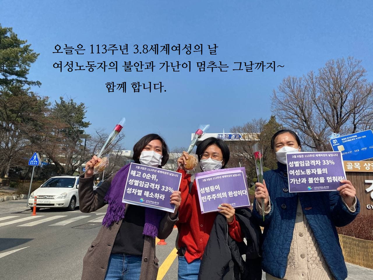 지금으로부터 113년 전 미국의 여성 노동자들은 빵을 들고 여성의 생존권을, 장미를 들고 인간답게 살 권리(참정권)을 외쳤답니다.