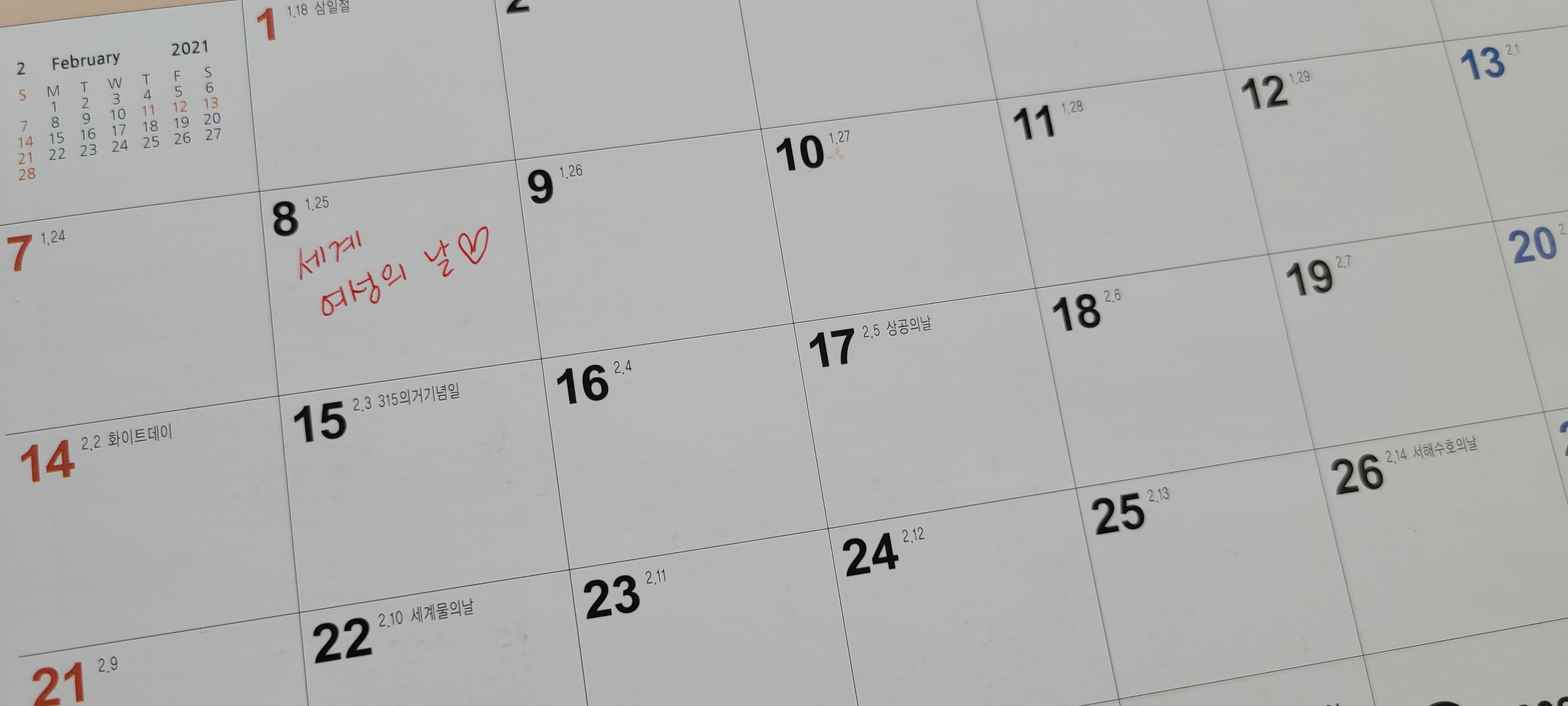 달력에 3월 8일 세계여성의 날을 표시하고 온라인에 인증하는 캠페인이었어요 :)