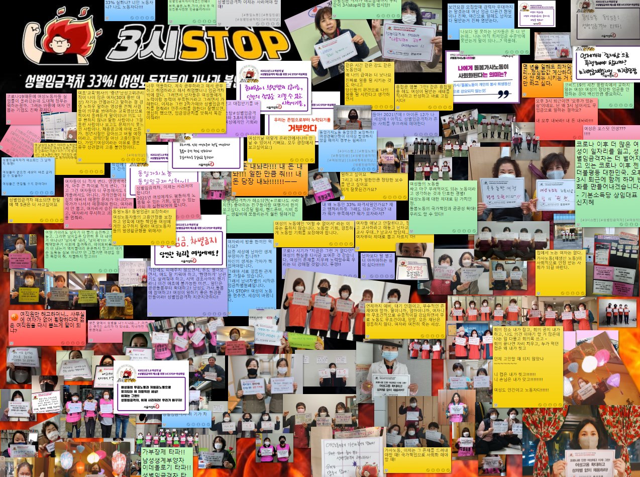 성별임금격차 33%에 대하여, 여성노동자들의 생각과 다양한 인증들을 한데 모은 포스트잇 시위!!