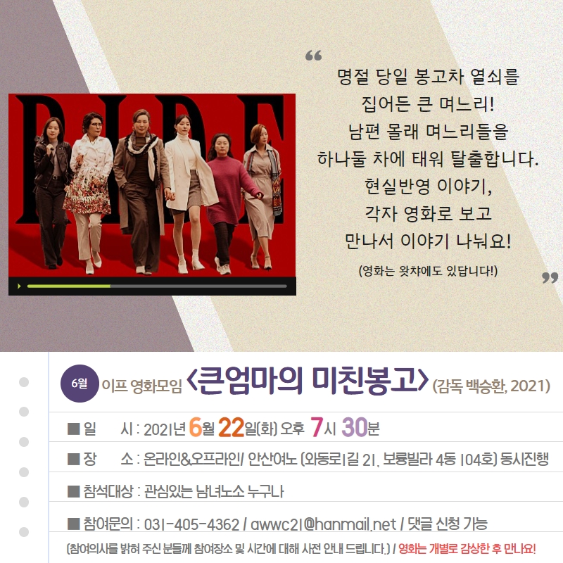 6월 여성주의 책모임 이프는 영화 「큰엄마의 미친봉고」를 주제로 만납니다 :)