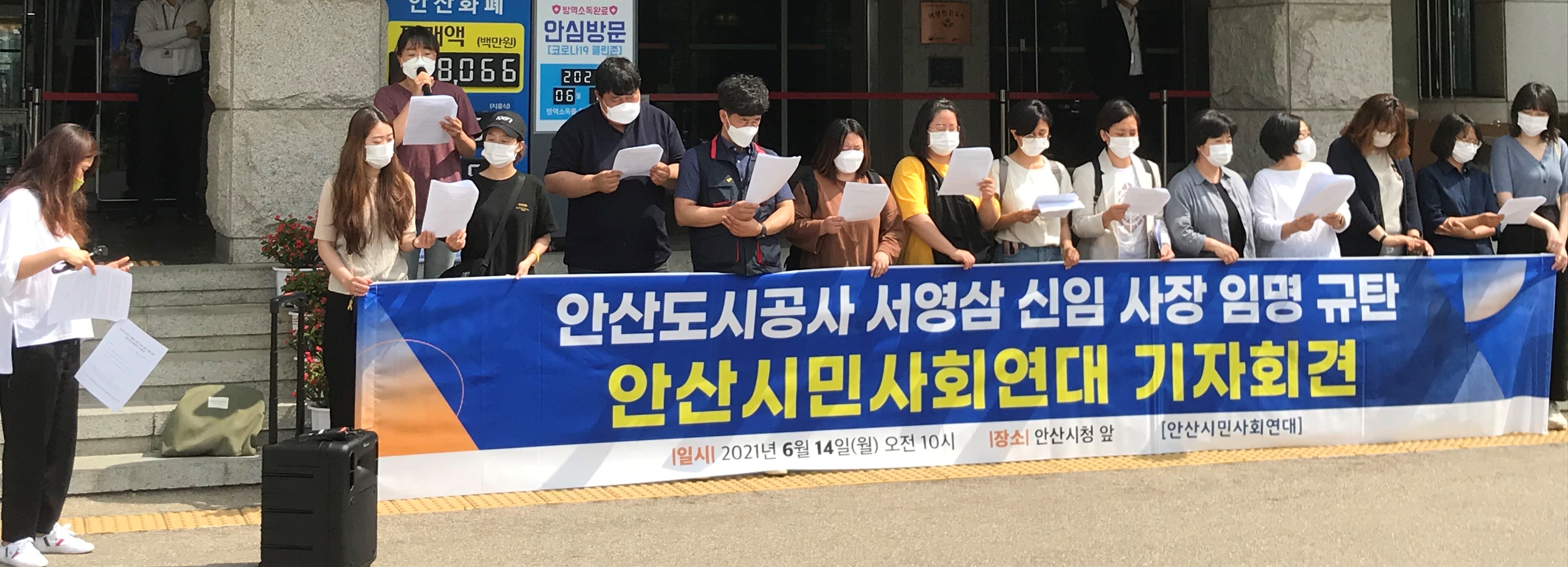 "안산도시공사 서영삼 신임 사장 임명 강행 규탄 안산시민사회연대 기자회견"이 있었습니다.