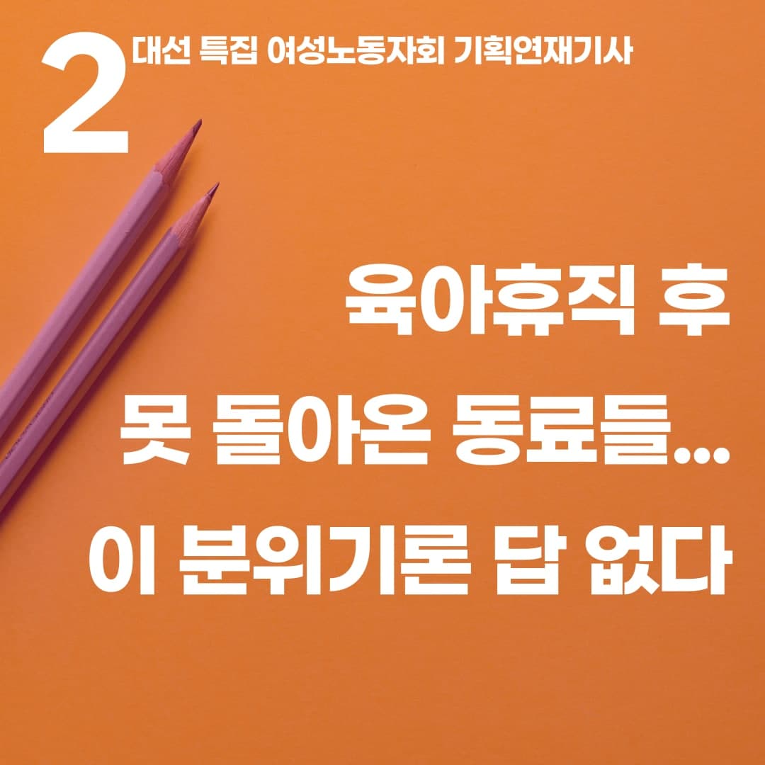 [성평등노동 없는 대선, 여성노동자가 말한다②] "육아휴직 후 못 돌아온 동료들... 이 분위기론 답 없다 : 기혼-유자녀 여성노동자가 마주한 현실
