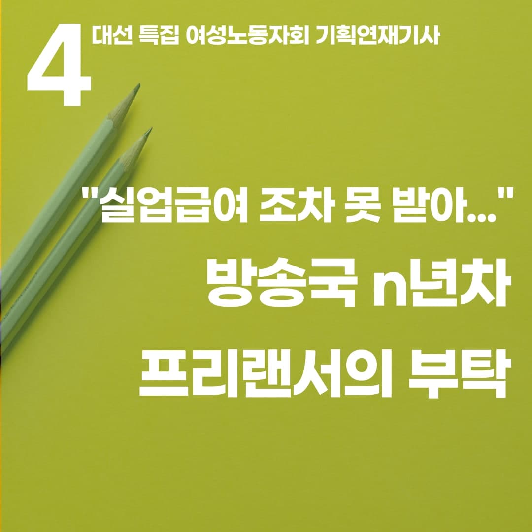[성평등노동 없는 대선, 여성노동자가 말한다④] "실업급여조차 못 받아..." 방송국 n년차 프리랜서의 부탁 : 프리랜서 노동자들의 현실