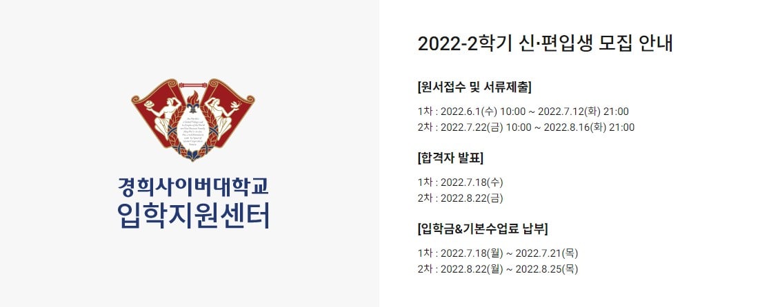 2022년도 2학기 경희사이버대학 입학지원 안내