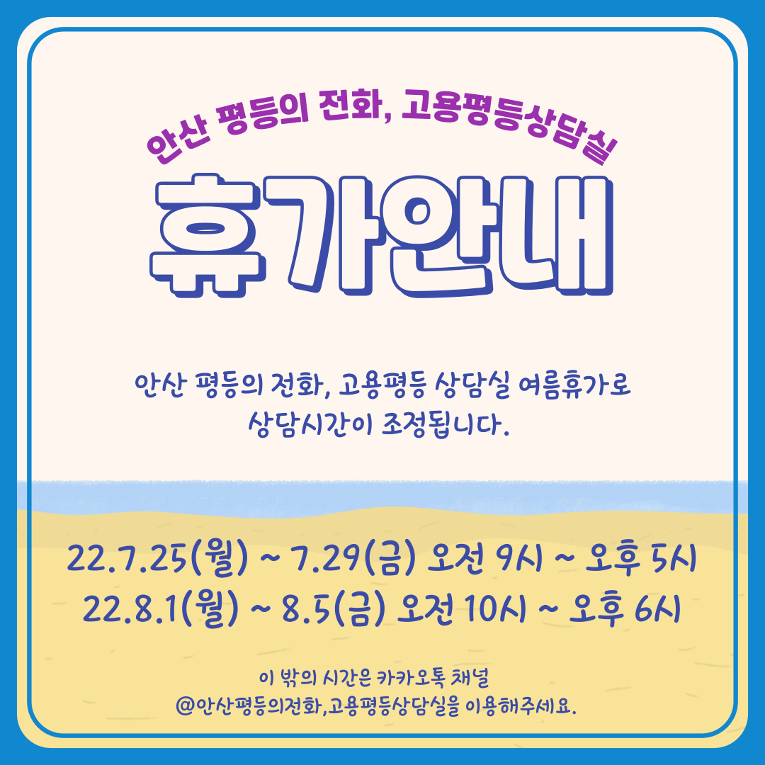 안산 평등의전화, 고용평등상담실 여름휴가기간 상담시간 조정 안내