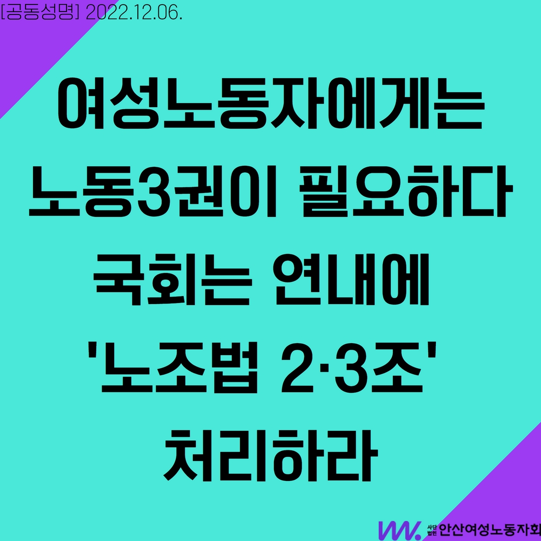 2023년에는 노란봉투법이 있는 해, 모든노동자가 노동3권을 누리는 해로 새출발해야 한다. 우리 여성단체들은노란봉투법 연내 통과와 성평등한 노동환경 확대를 위해 더 뜨겁게 연대할 것이다.
