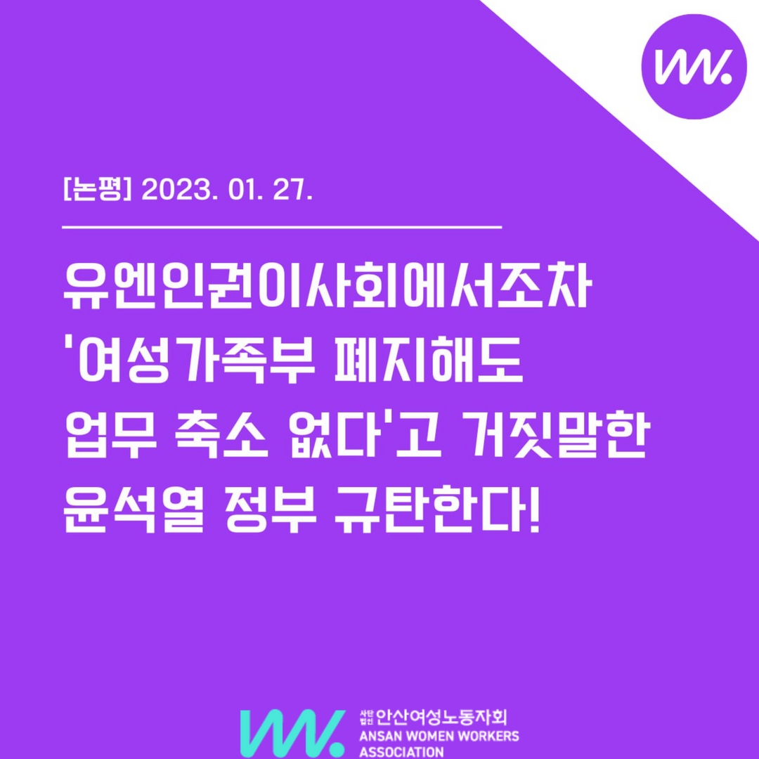 [논평] 유엔인권이사회에서조차 '여성가족부 폐지해도 업무 축소 없다'고 거짓말한 윤석열 정부 규탄한다!
