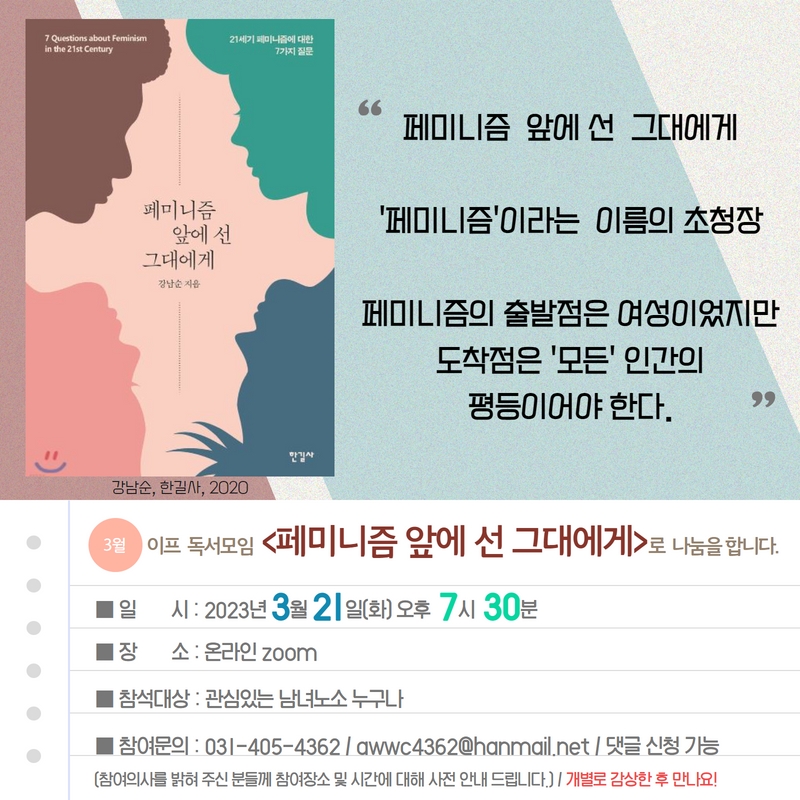 3월 이프는 도서 「페미니즘 앞에 선 그대에게」로 나눔 합니다.