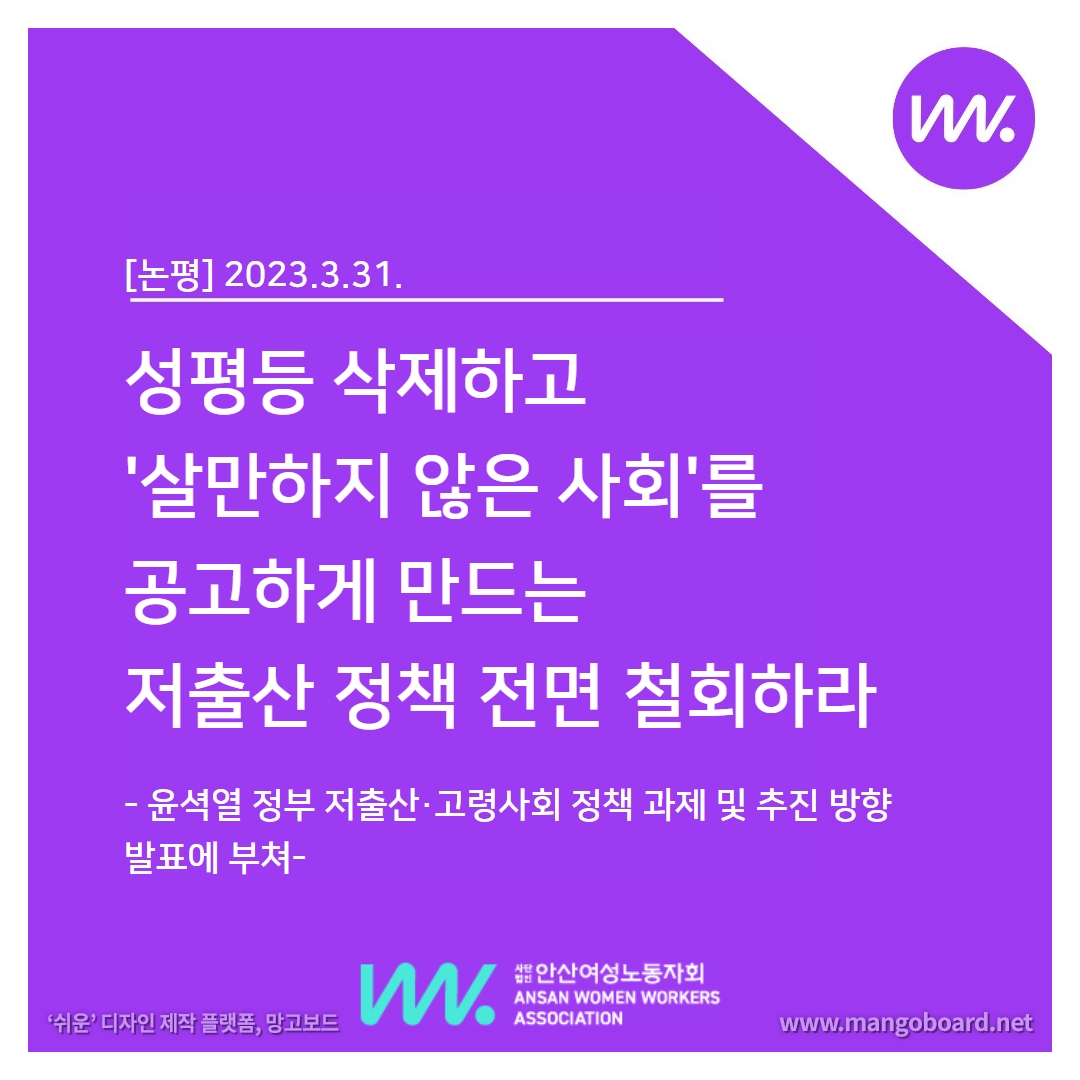 [논평] 성평등 삭제하고 '살만하지 않은 사회'를 공고하게 만드는 저출산 정책 전면 철회하라-윤석열 정부 저출산·고령사회 정책 과제 및 추진 방향 발표에 부쳐-