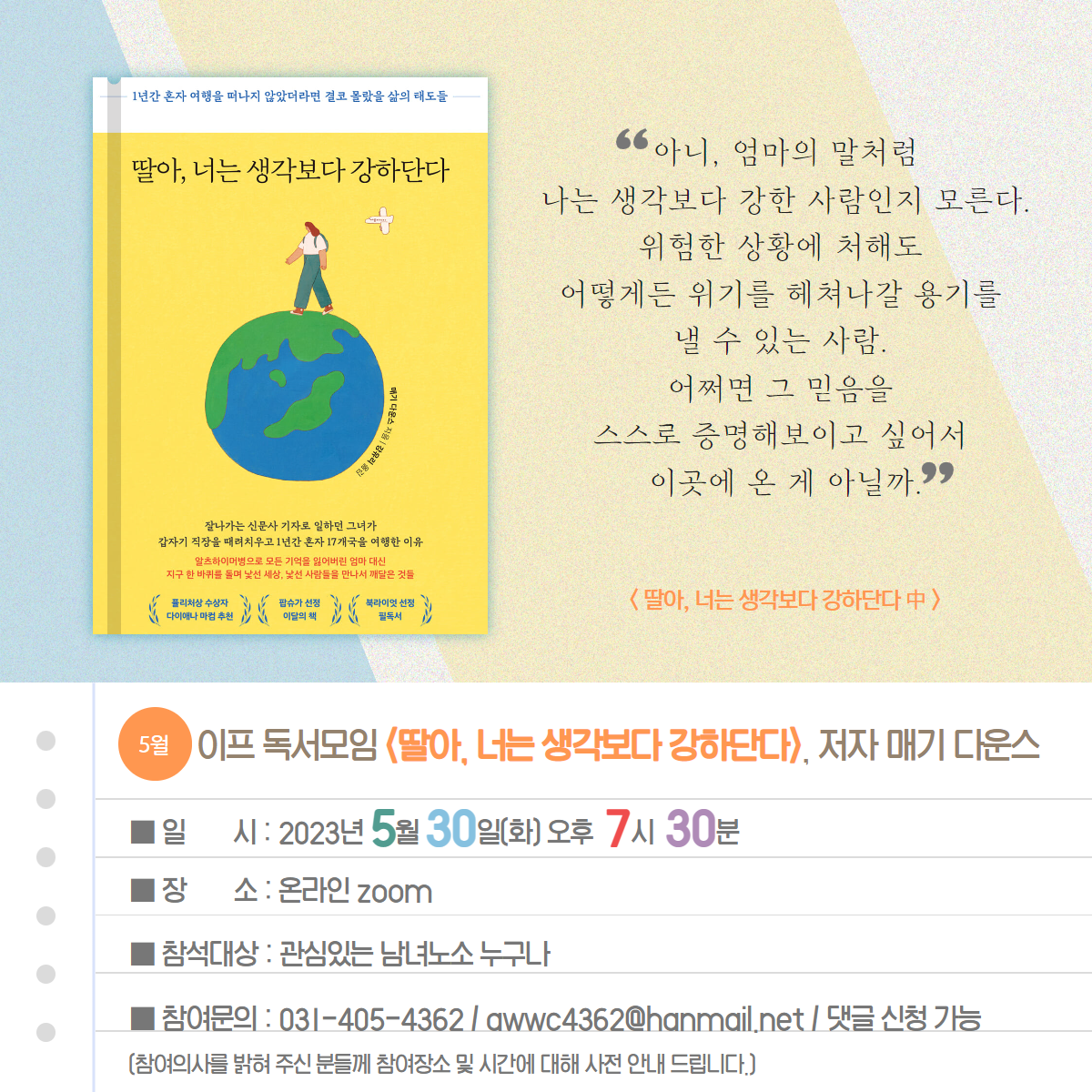 5월 이프는 <딸아, 너는 생각보다 강하단다>(저자 매기 다운스)로 엽니다!