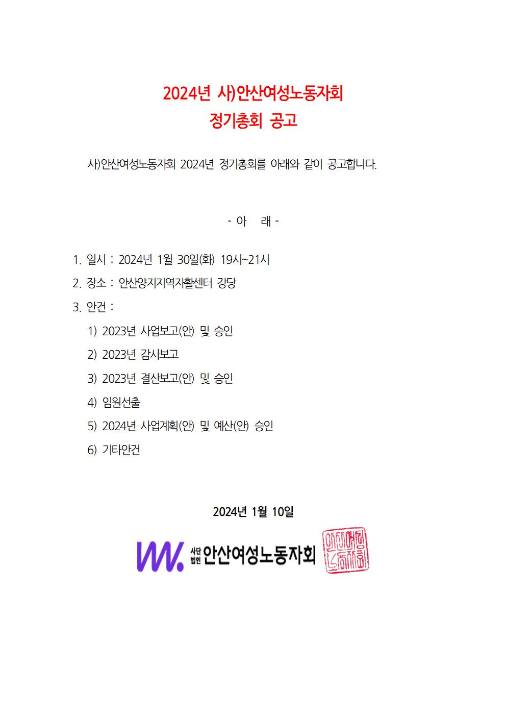 제25회 안산여성노동자회 총회공고