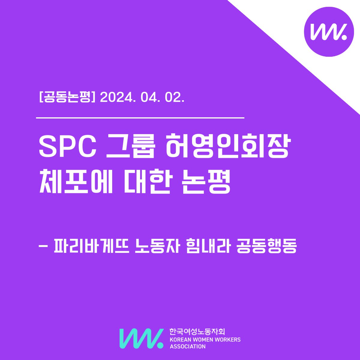 [SPC 그룹 허영인회장 체포에 대한 논평]