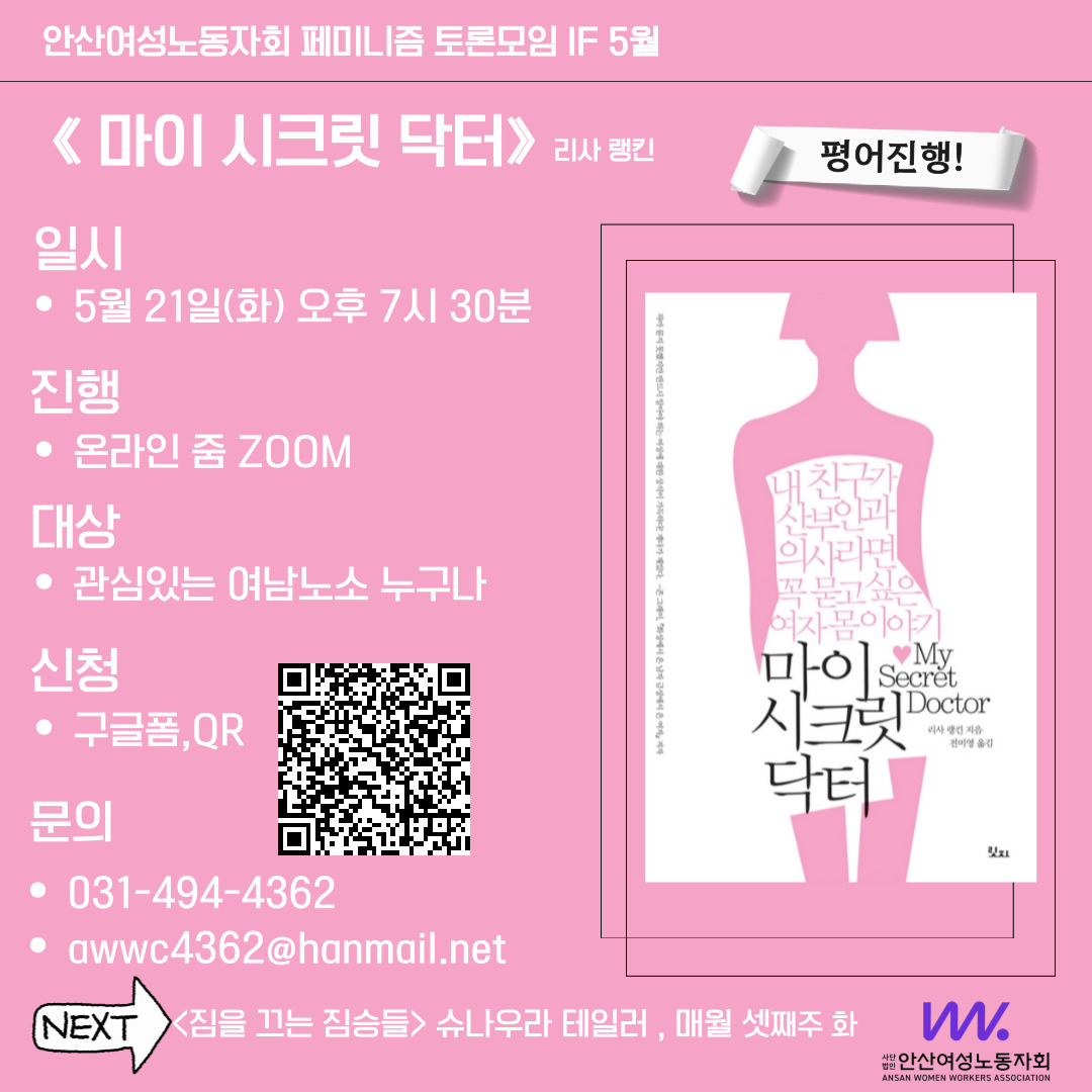『마이 시크릿 닥터』는 정보의 사각지대에 놓여 있던 여성들이 산부인과에서 차마 묻지 못했던 궁금증 250개의 질문을 담은 책으로, 특유의 솔직함과 유쾌함으로 환자의 상처를 보듬는 저자가 음부의 명칭부터 완경에 이르기까지 여성의 전 생애 주기를 포괄하는 질문과 사례를 들려주는 책입니다. 잘 몰랐던 나의 몸 이야기 이프에서 솔직하고 담백하며 안전하게 이야기해 보아요!