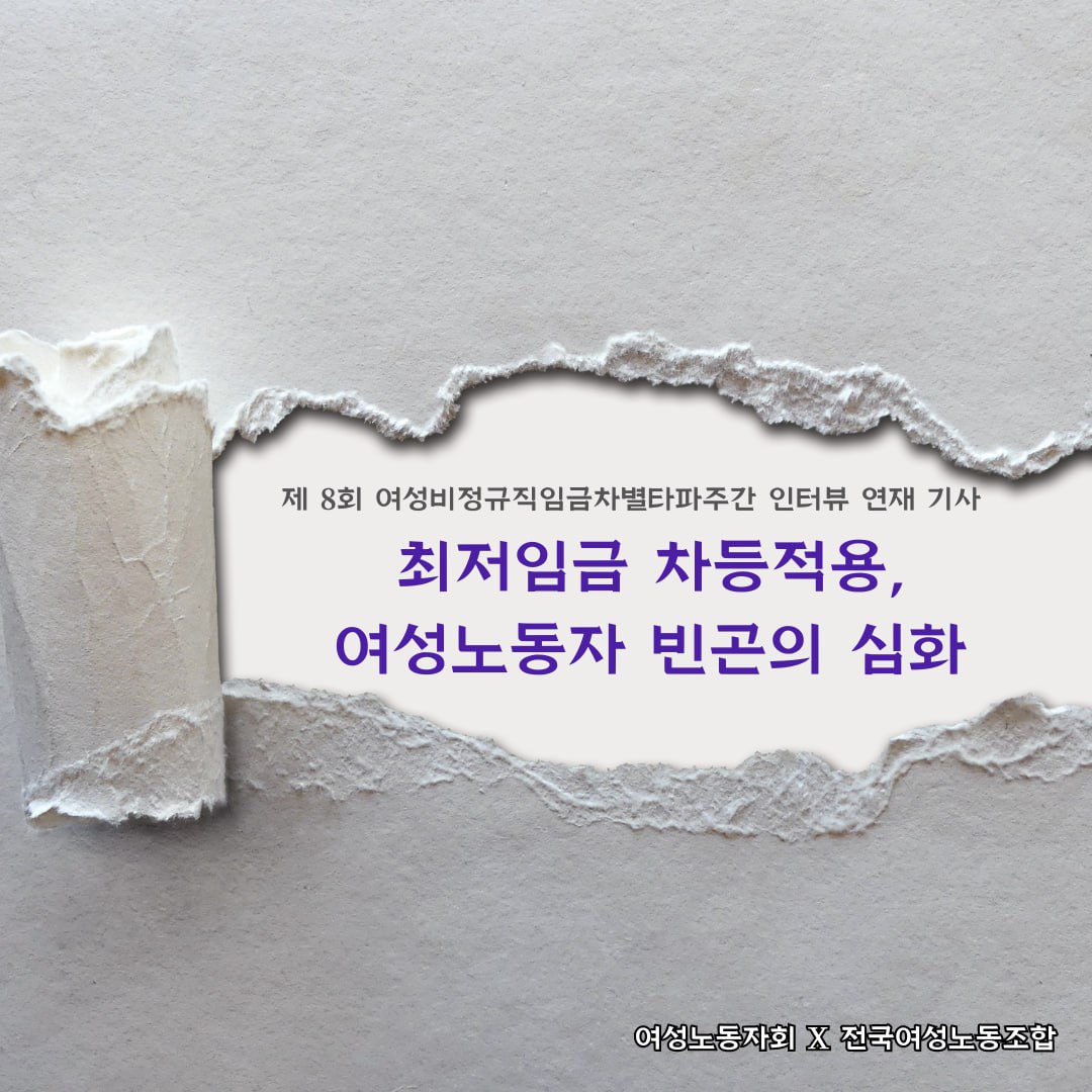 이에 여성노동자회와 전국여성노동조합은 이러한 문제가 성차별임을 제기하는 액션과 인터뷰 연재기사를 통해 문제를 드러내고자 합니다.