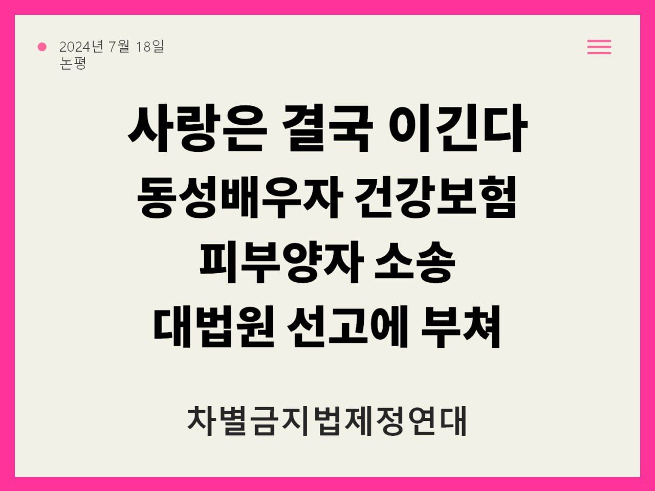 [논평] 사랑은 결국 이긴다동성배우자 건강보험 피부양자 소송 대법원 선고에 부쳐