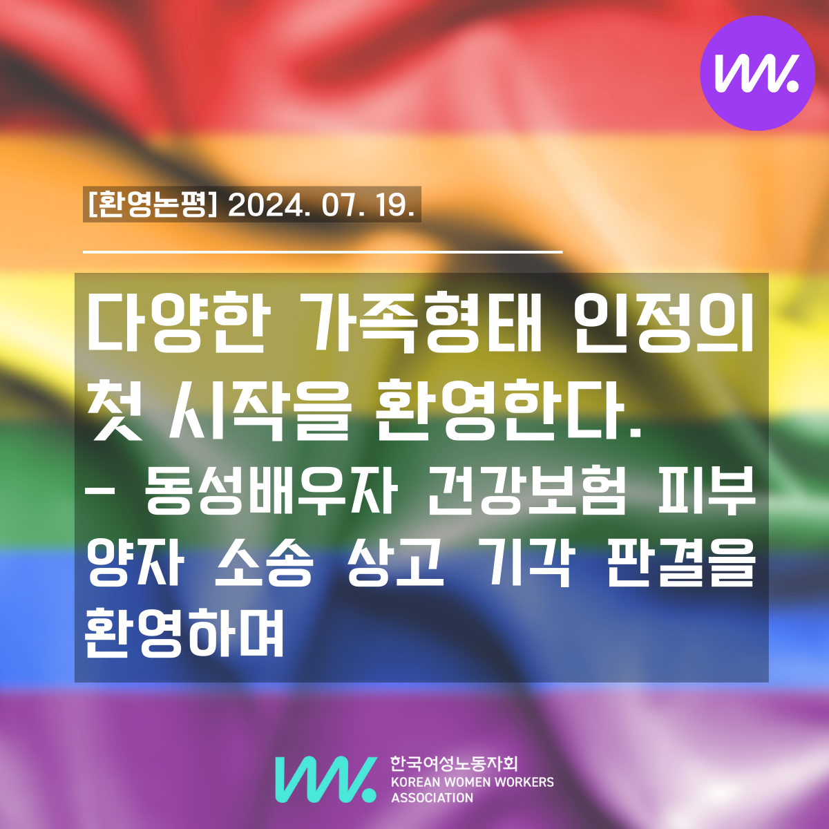 [환영논평] 다양한 가족형태 인정의 첫 시작을 환영한다. - 동성배우자 건강보험 피부양자 소송 상고 기각 판결을 환영하며