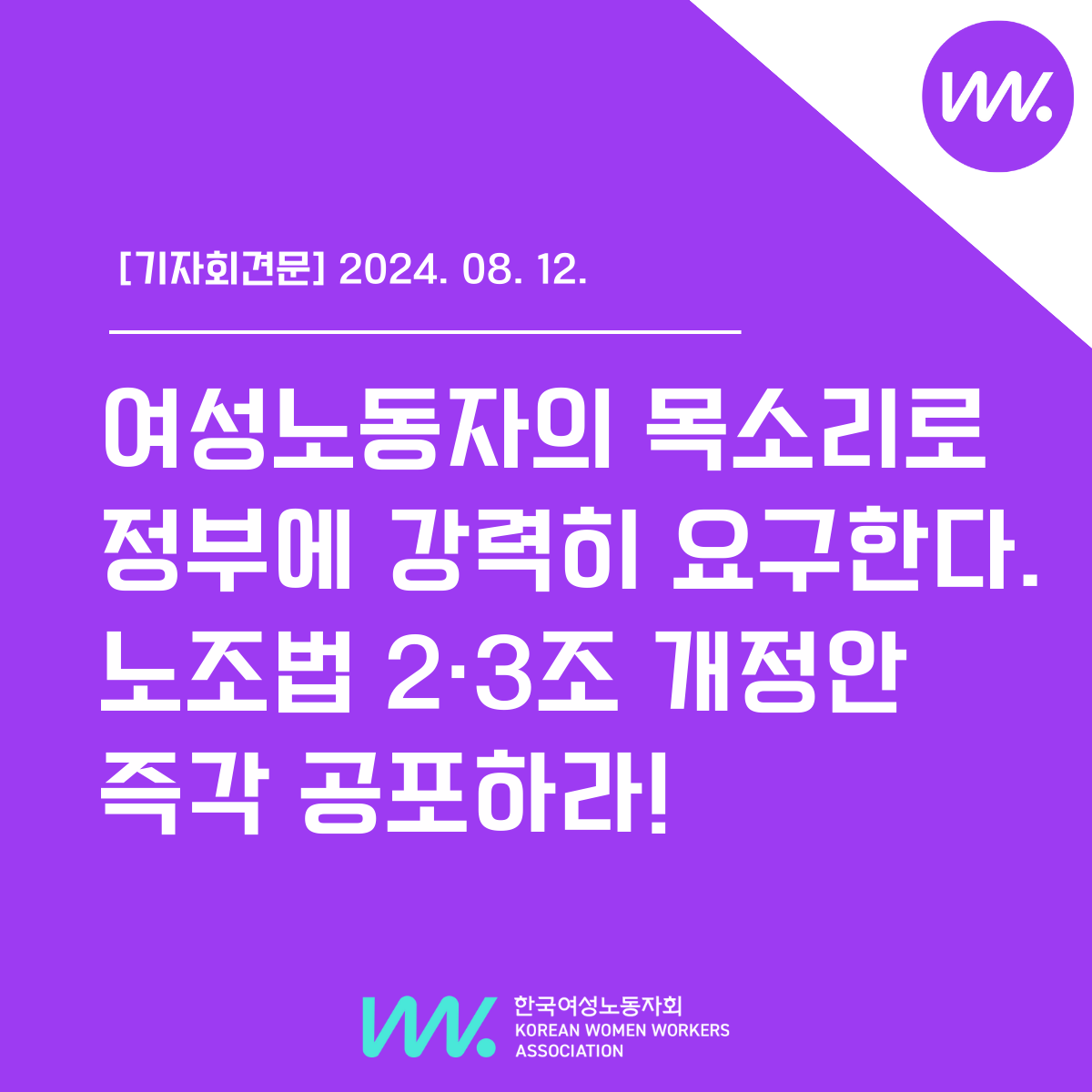 [기자회견문] 여성노동자의 목소리로 정부에 강력히 요구한다. 노조법 2·3조 개정안 즉각 공포하라!