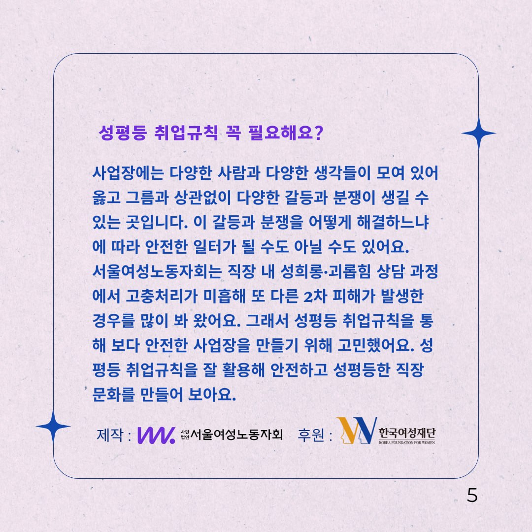 #성평등 #취업규칙 #서울여성노동자회 #성평등취업규칙 #한국여성재단