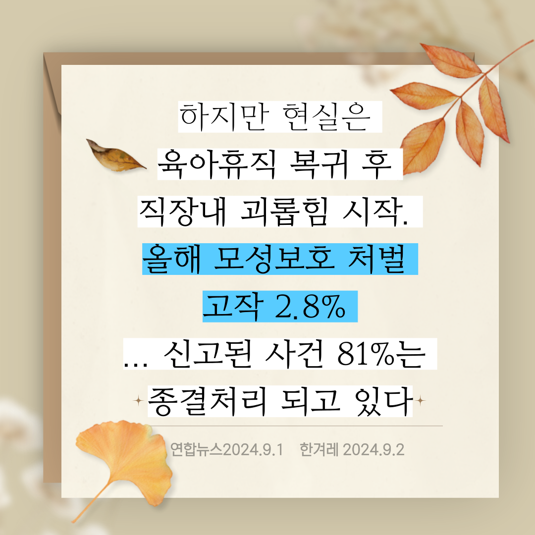 육아휴직 복귀 후 직장 내 괴롭힘 시작.