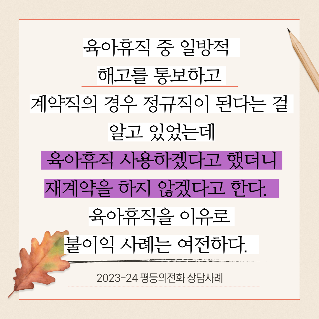 육아휴직을 이유로한 '불이익 사례'는 여전하다.