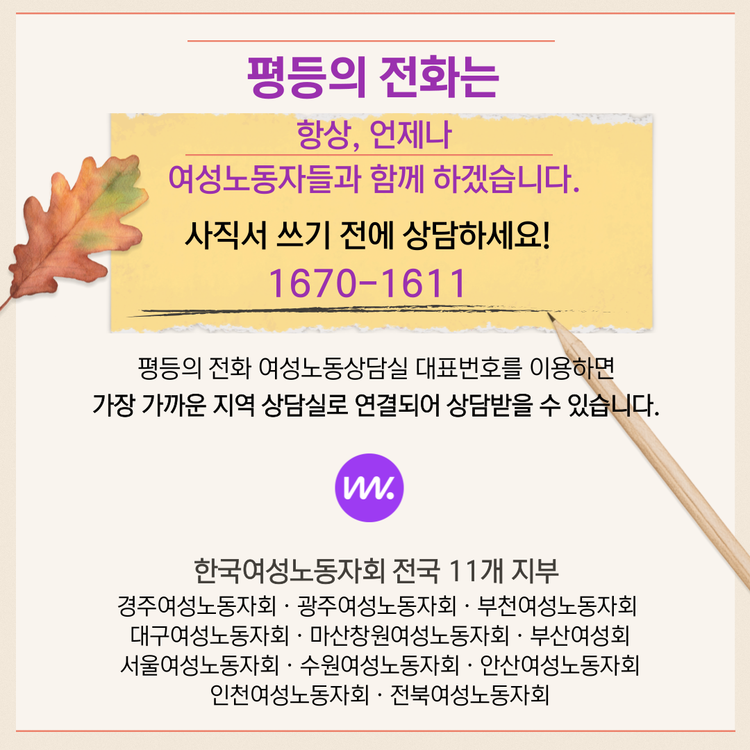 사직서 쓰기 전 '평등의전화'와 상담하세요!