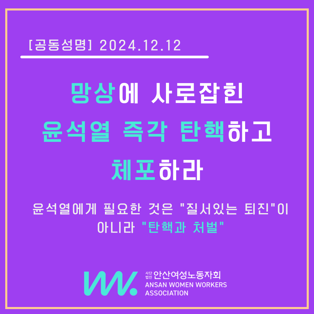국회와 수사기관은 윤석열을 즉각 탄핵하고 체포해야 한다. 내란범죄를 스스로 자인하고 정당화하고 있는 범죄자, 국민 위에 군림하려는 독재자, 극우적 망상에 사로잡힌 윤석열이 더 이상 대통령직을 수행해서는 안 된다. 주권자 국민의 명령이다.