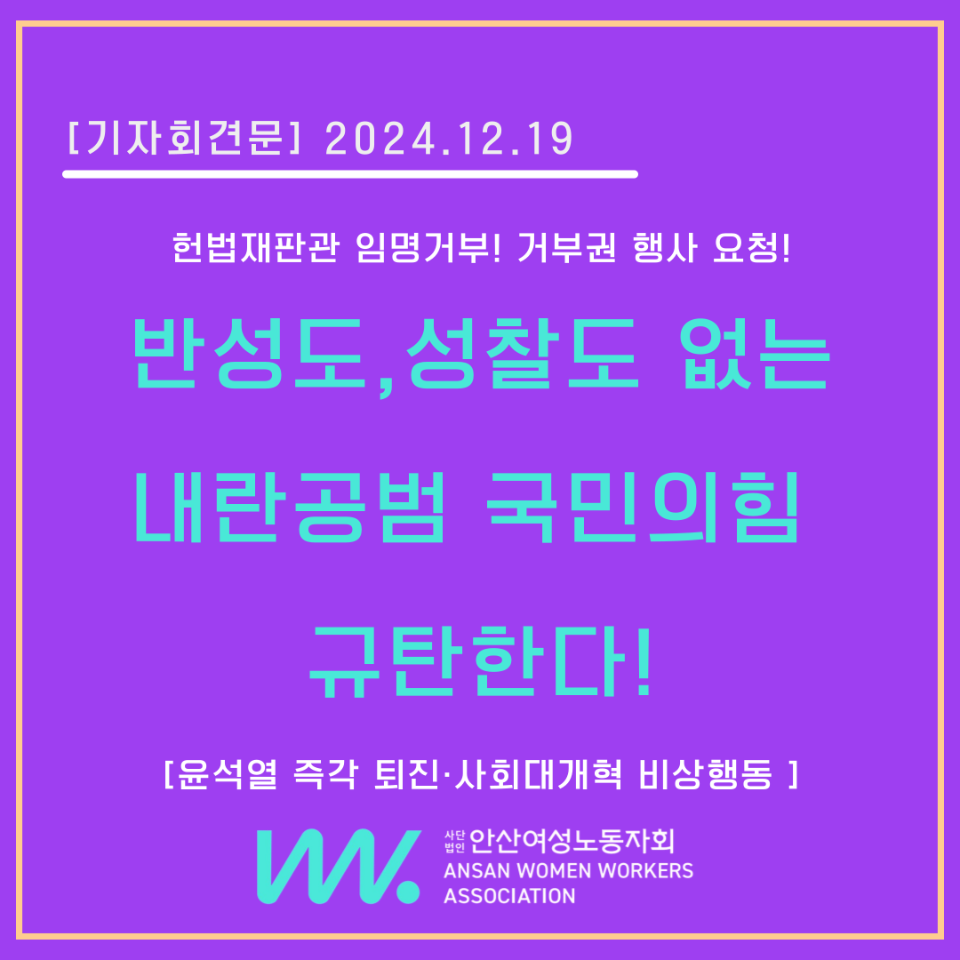 [기자회견문]헌법재판관 임명거부! 거부권 행사 요청!반성도, 성찰도 없는 내란공범 국민의힘 규탄한다!