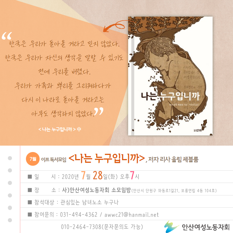 @ 장소 : 안산여성노동자회 소모임방(안산시 단원구 와동로1길21, 보륭연립 4동 104호) / 상황에 따라 온라인 모임 전환 혹은 장소가 변결될 수 있습니다