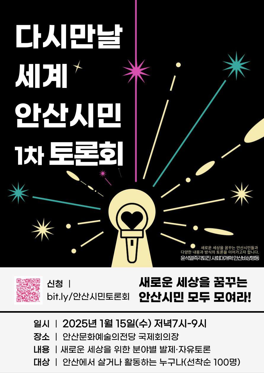 다시 만날 세계 <안산시민 1차 토론회> 새로운 세상을 꿈꾸는 안산시민 모두 모여라! 이날은 실내에서 촛불과 응원봉의 목소리를 밝혀요! 🌟🌟🌟