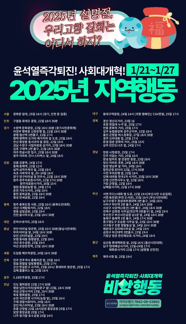 🔥2025 1/21 ~27 각 지역별 행동입니다.설날 고향을 일찍 찾으시는 분들은 내 고향의 행동에 함께 해주십시오.