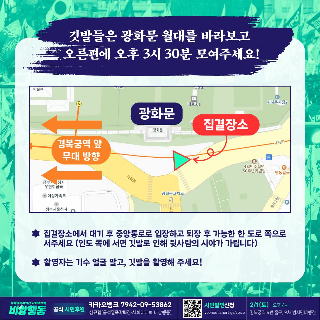 참여하실 깃발동지들은 광화문 월대를 바라보고 오른편에 오후 3시30분에 모여주세요!