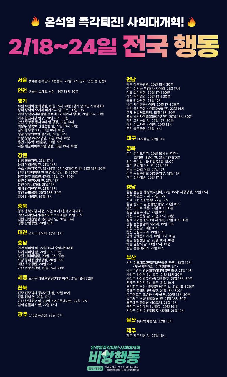 🔥2025년 2/18∼ 2/24일 전국 행동