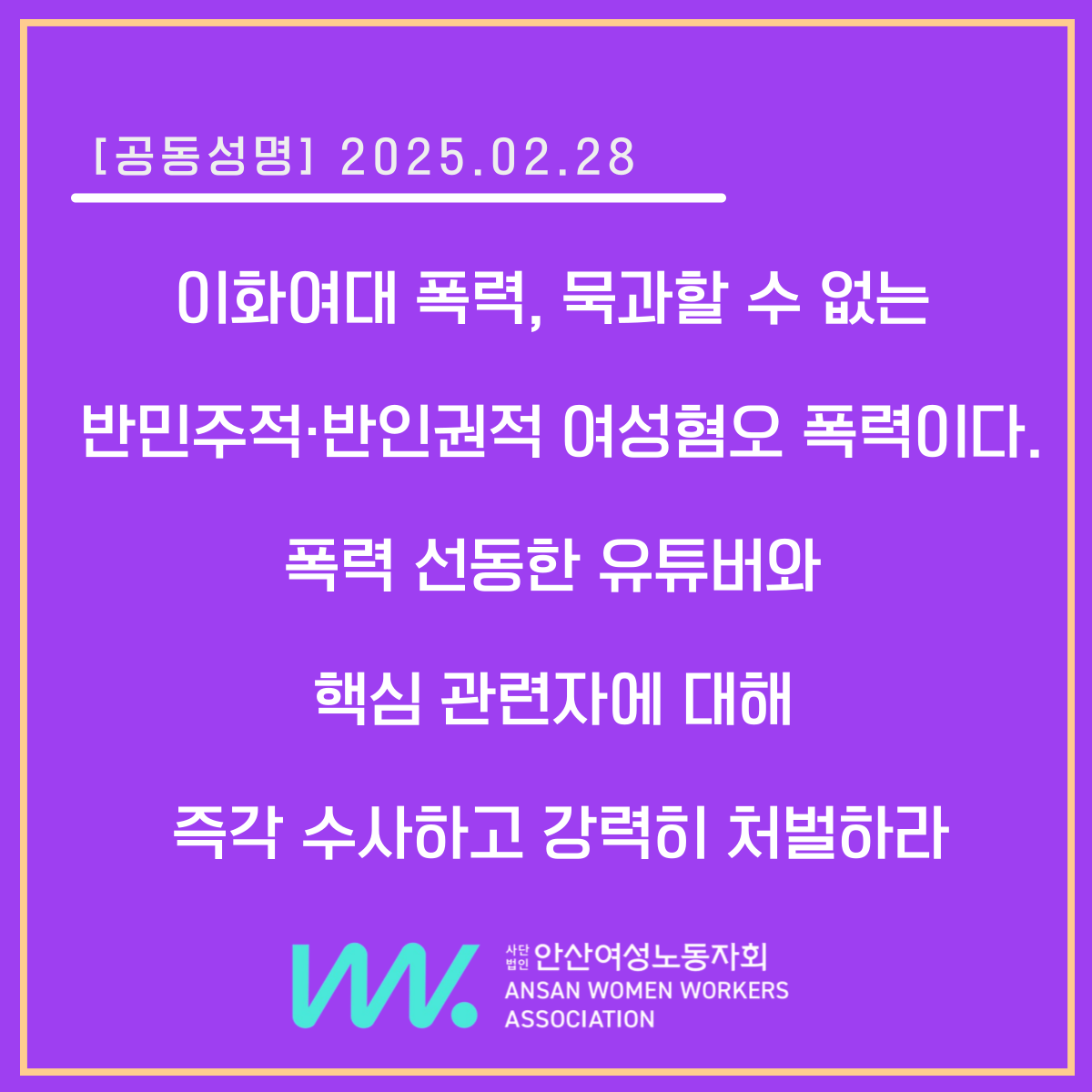 [공동성명]이화여대 폭력, 묵과할 수 없는 반민주적·반인권적 여성혐오 폭력이다.폭력 선동한 유튜버와 핵심 관련자에 대해 즉각 수사하고 강력히 처벌하라