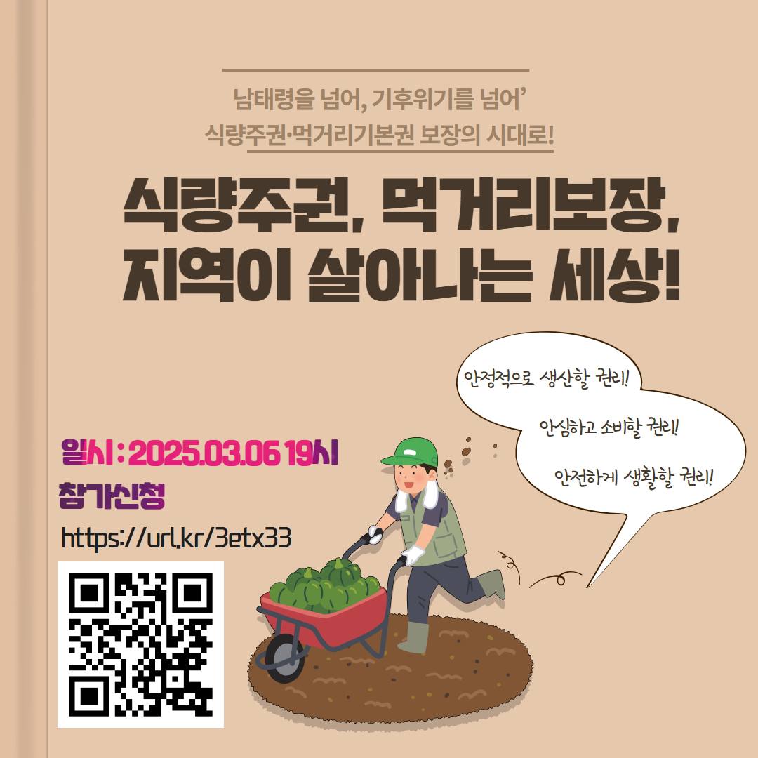 - 주최 : 윤석열즉각퇴진·사회대개혁 비상행동 <식량주권과 먹거리가 보장되고, 지역이 살아나는 세상> 소위원회