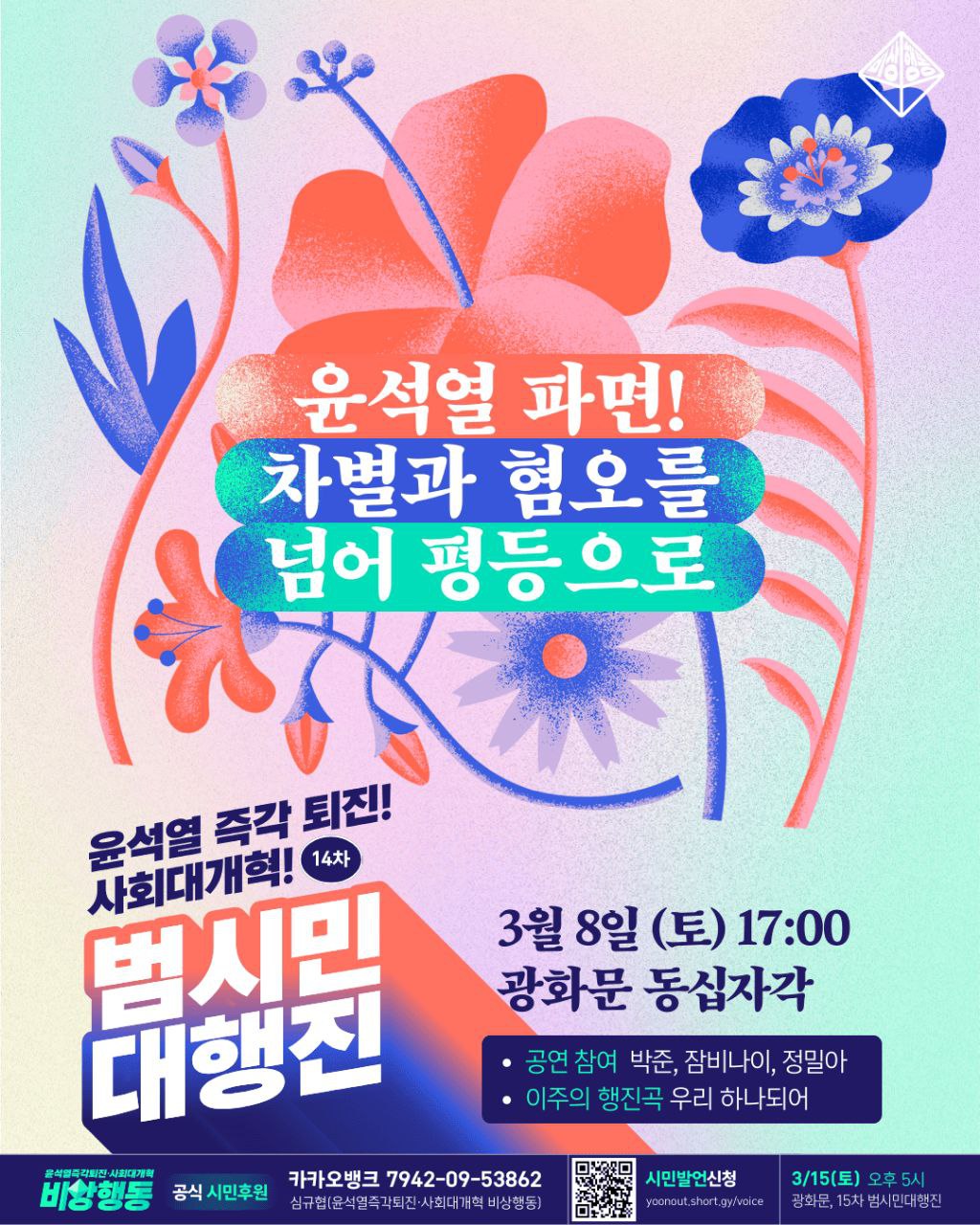 윤석열의 파면선고가 얼마 남지 않았습니다. 우리가 원하는 새로운 봄을 맞이하는 걸음에 함께 해주세요!!!