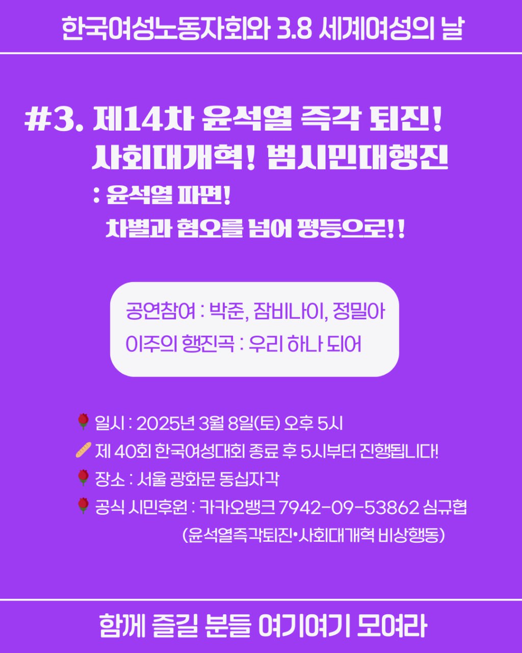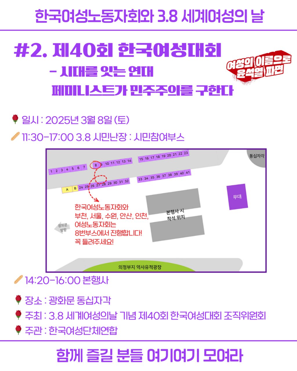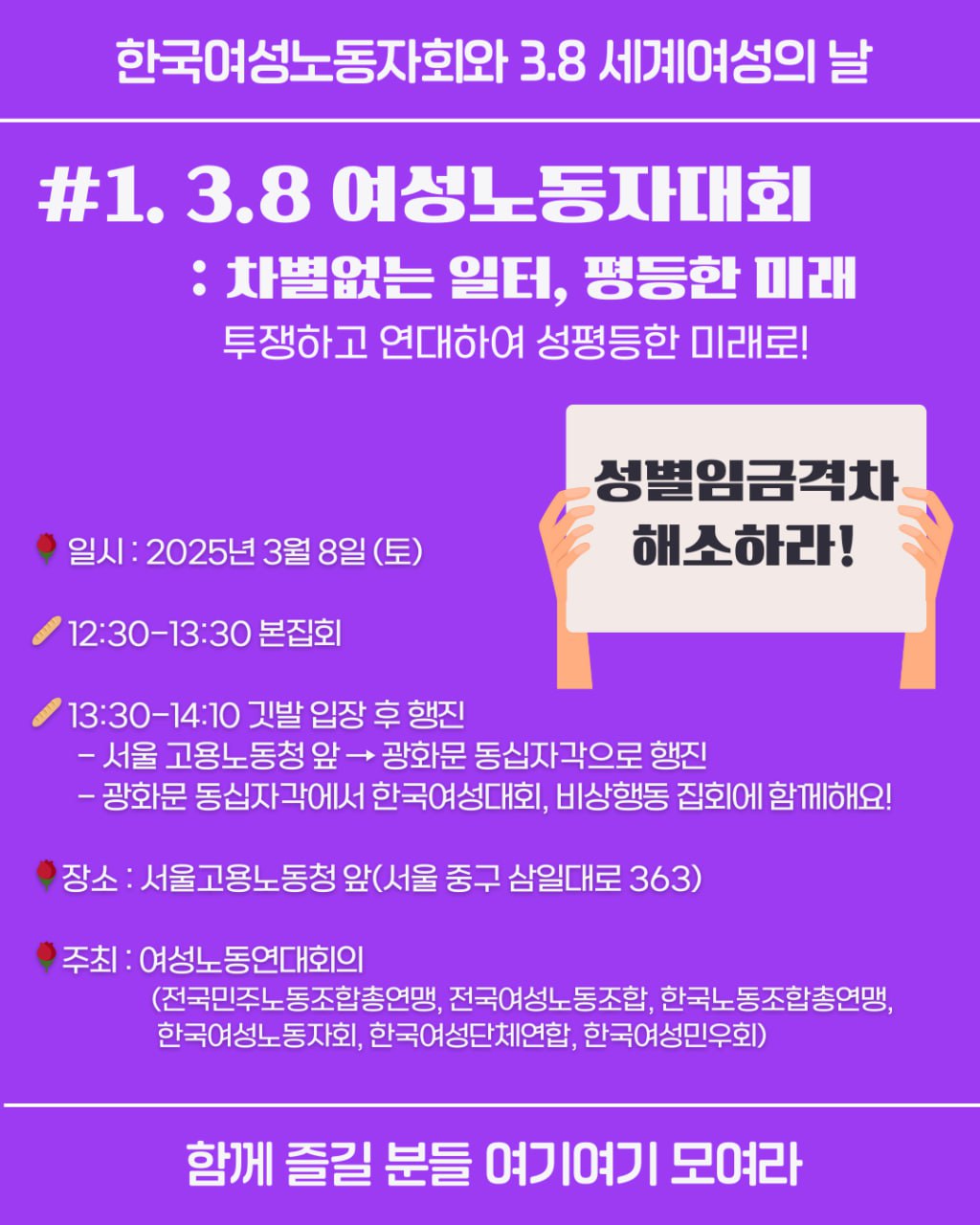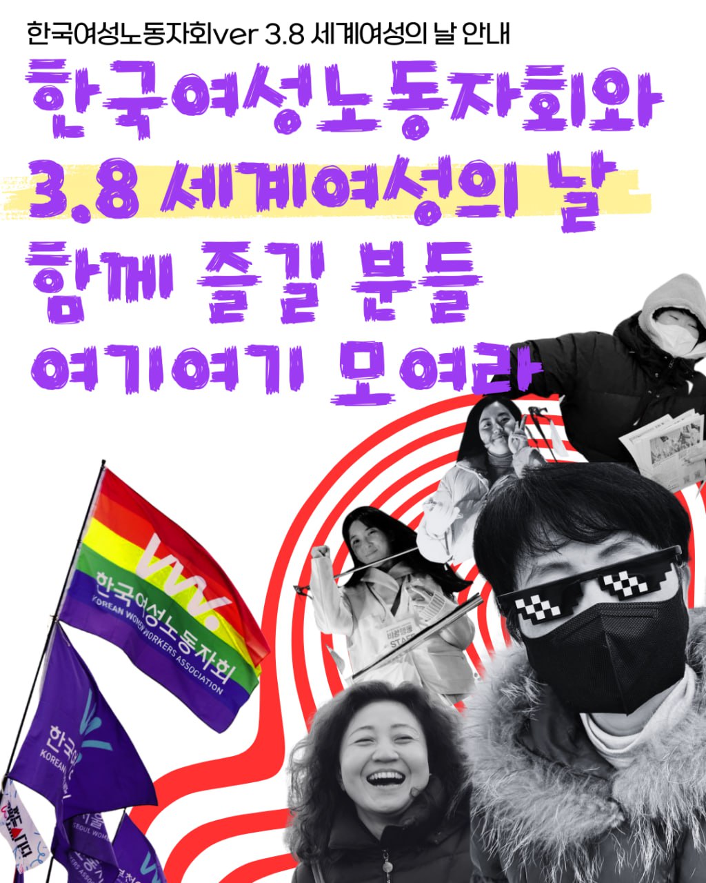 한국여성노동자회와 3.8 세계여성의 날 함께 즐길 분들 여기여기 모여라!🌹🥖💜🙌