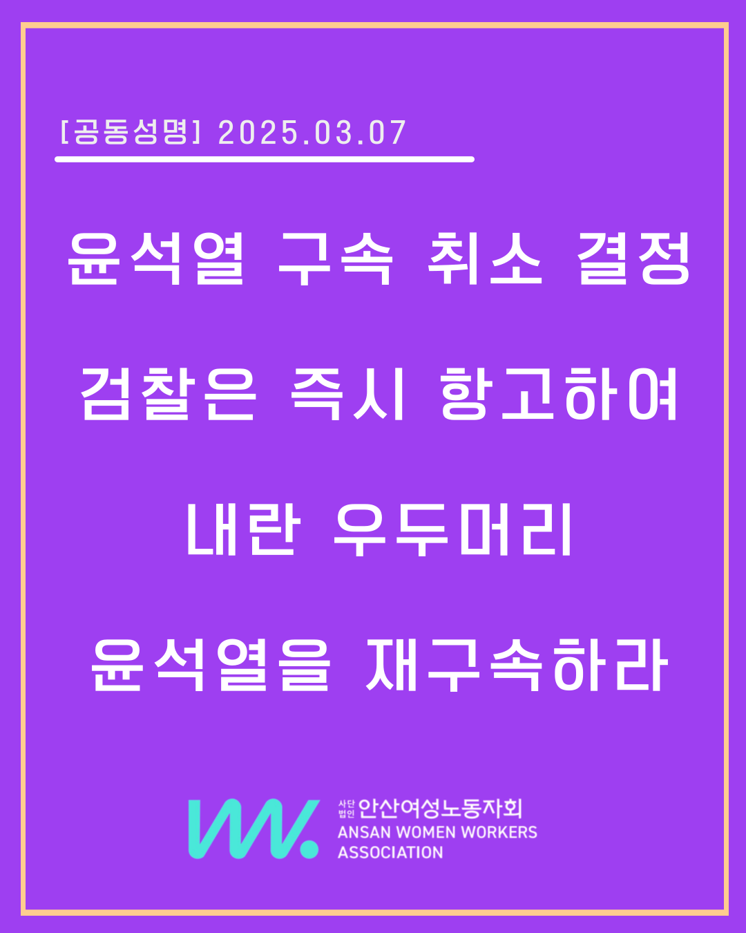 내란을 일으켜 시민들의 삶을 혼란에 빠트리고 자신의 이익을 위해 권력을 활용한 윤석열이 위치할 자리는 관저가 아닌 감옥이다. 이에 우리는 강력하게 요구한다. 검찰은, 즉시 항고하여 내란 우두머리 윤석열을 재구속하라.