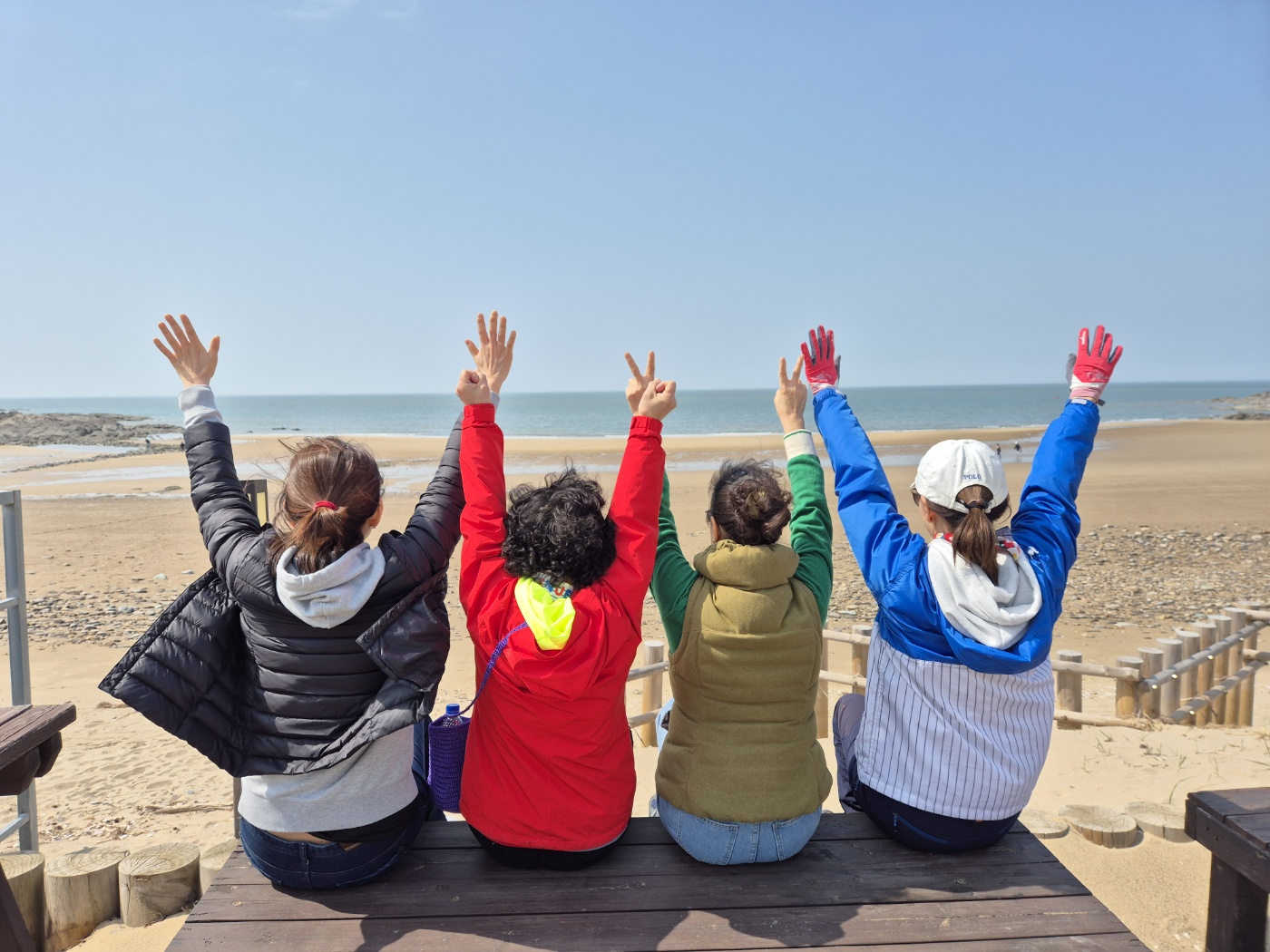 모래밭에서는 사람들이 갈고리 호미를 들고 조개 캐기에 한창이었다. 무지개조개 등을 채취하는 모습을 보니, 우리도 장비만 있었다면 직접 해보고 싶다는 생각이 들었다. 썰물로 인해 멀리까지 걸어 나갔지만, 그 끝에서 들려오는 파도 소리는 마치 우리를 부르는 듯했다. 마지막 장소에서야 비로소 우리가 느끼지 못했던 감탄이 터져 나왔고, 우리는 환호성을 질렀다. 이 순간, 왜 우리가 여행을 떠나는지, 그리고 뚜뚜모임이 얼마나 소중한지를 다시금 깨달았다.
