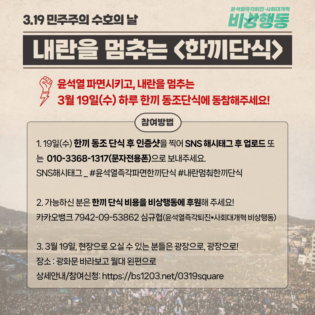 3.19 민주주의 수호의 날 [내란을 멈추는 <한끼단식>]