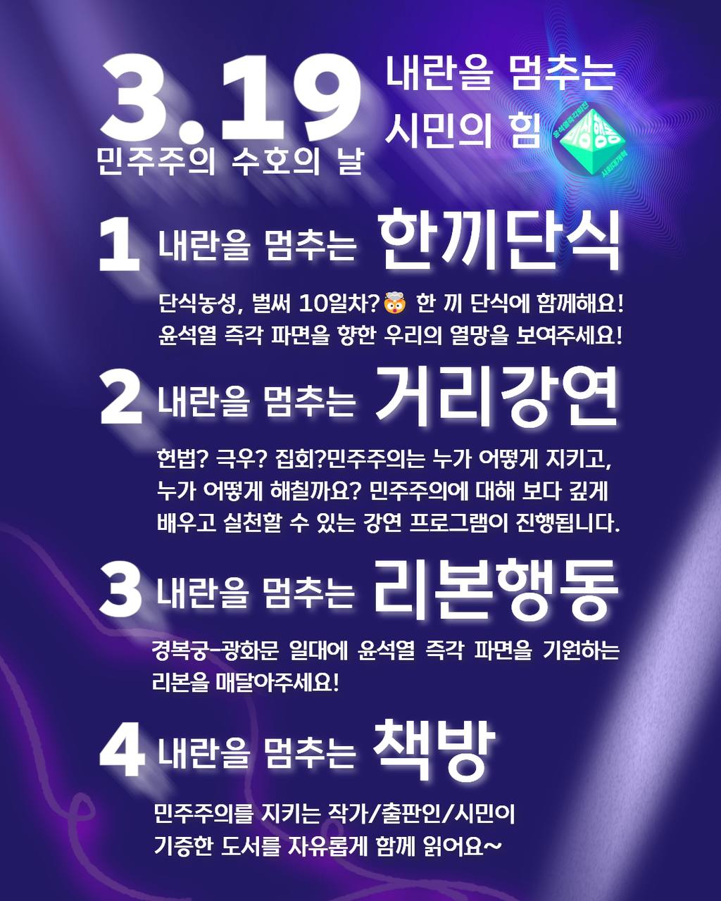 [비상행동 보도협조요청]✊ 한끼단식, 리본행동, 거리강연, 책방 등 시민행동 전개‘내란을 멈추는 광장으로! 3.19 민주주의 수호의 날’
