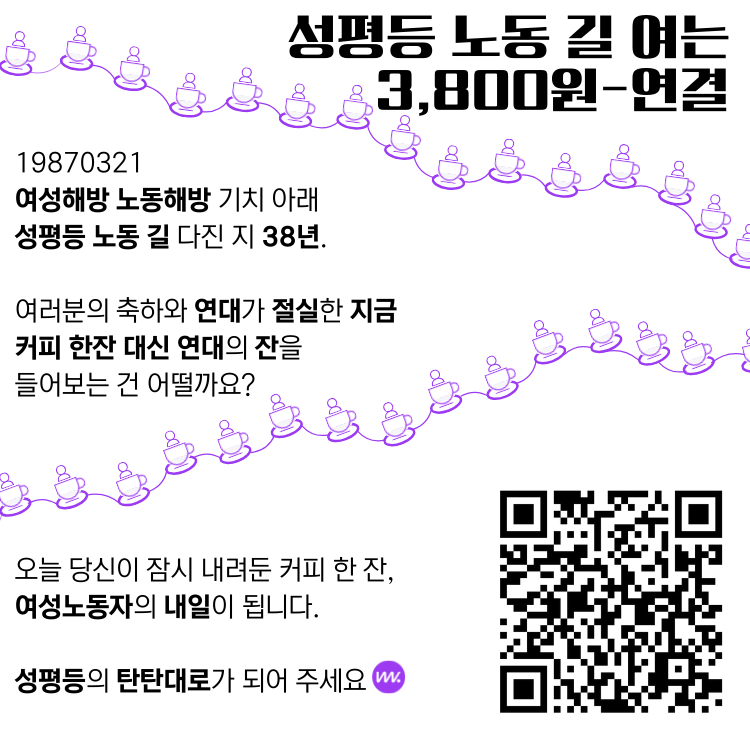 💜창립 38주년을 맞은 여성노동자회와 3,800원의 연결! 성평등의 탄탄대로가 됩니다.💜