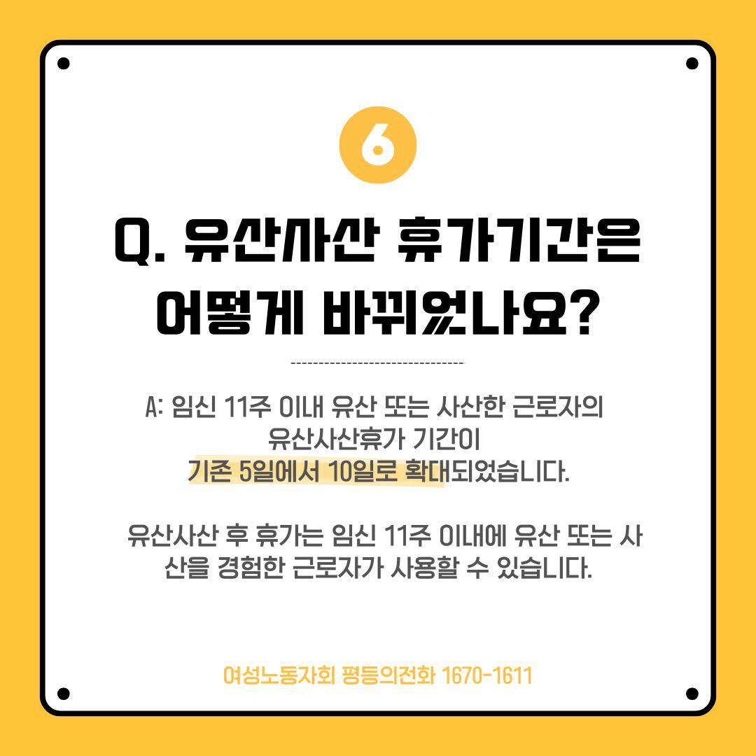 ✅ 유산·사산 휴가 기간 확대 (임신 11주 이내 유산·사산 시 10일 보장)