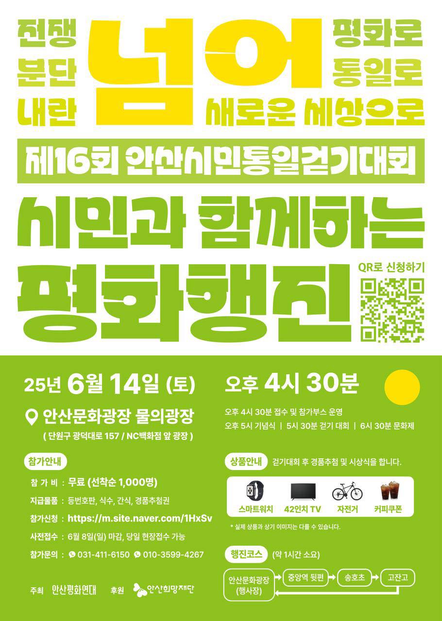 제 16회 시민과 함께하는 평화행진<안산시민 통일걷기대회>가 열립니다!