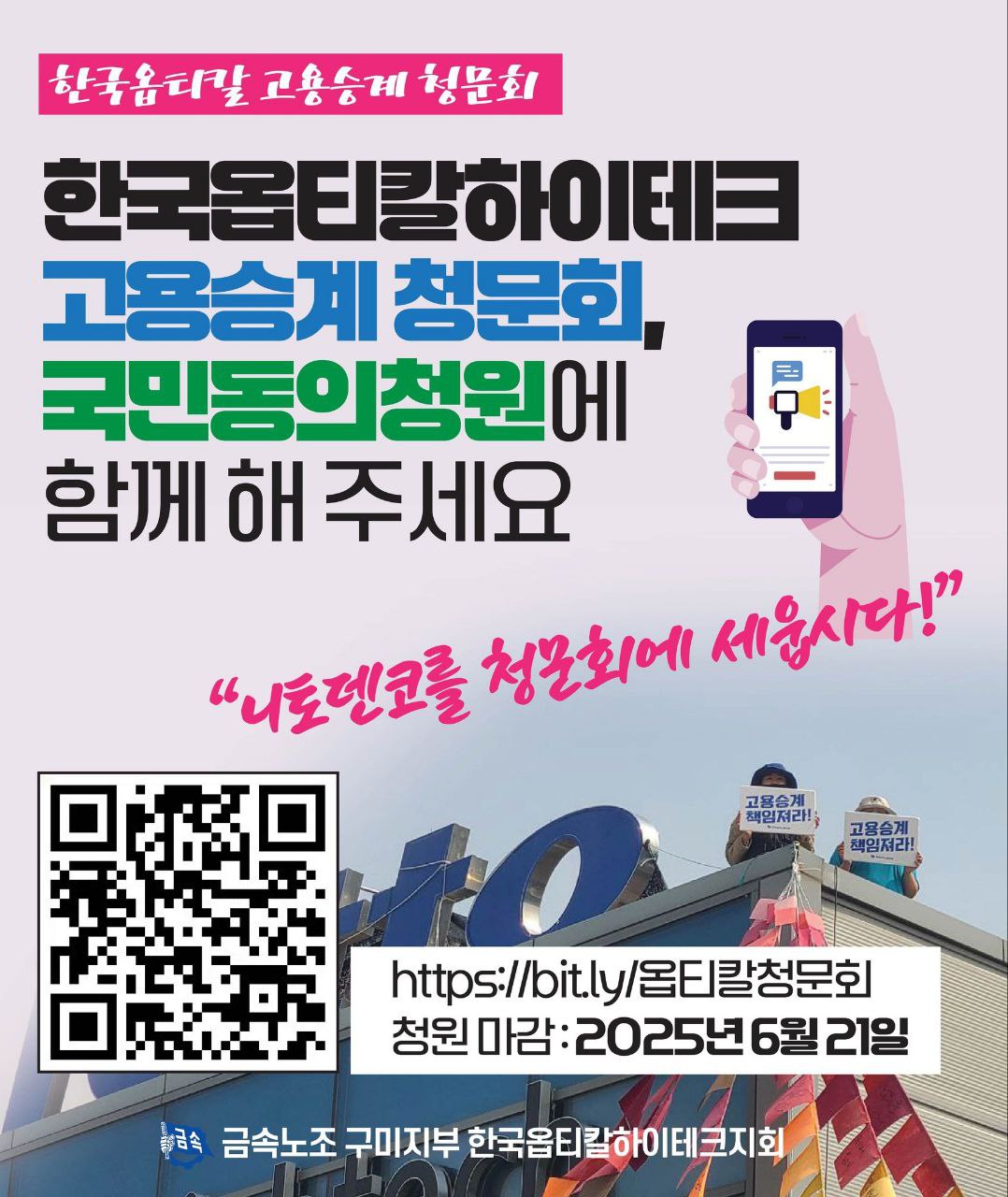 2022년 공장에 화재가 발생하자 일본 기업 ‘닛토덴코’가 세운 한국 옵티칼은 1,300억의 화재보험 보상금만 챙긴 채 공장 문을 닫아 버렸다. 노동자들은 평택의 자회사로 '고용 승계'를 요구했으나 회사는 정리해고로 노동자들을 내쫓았다.