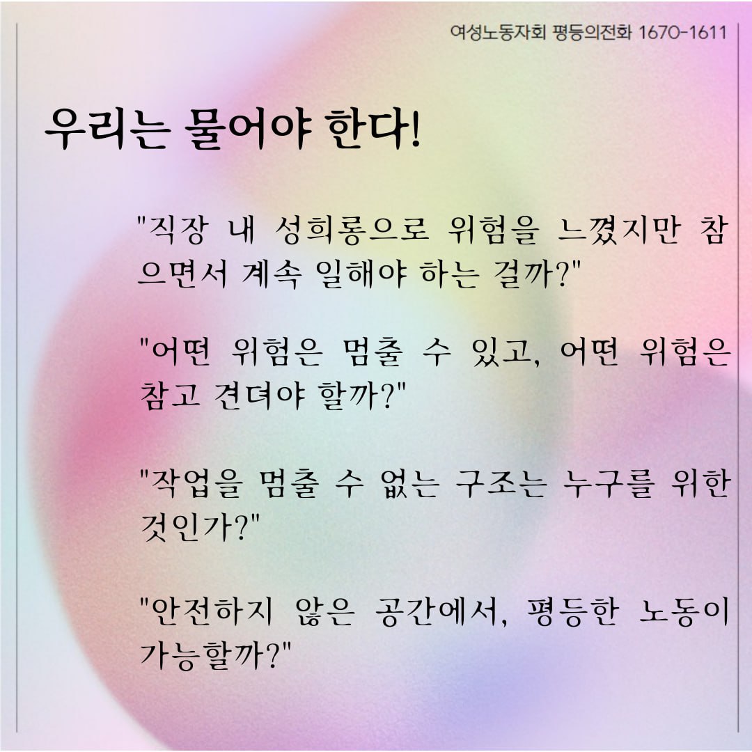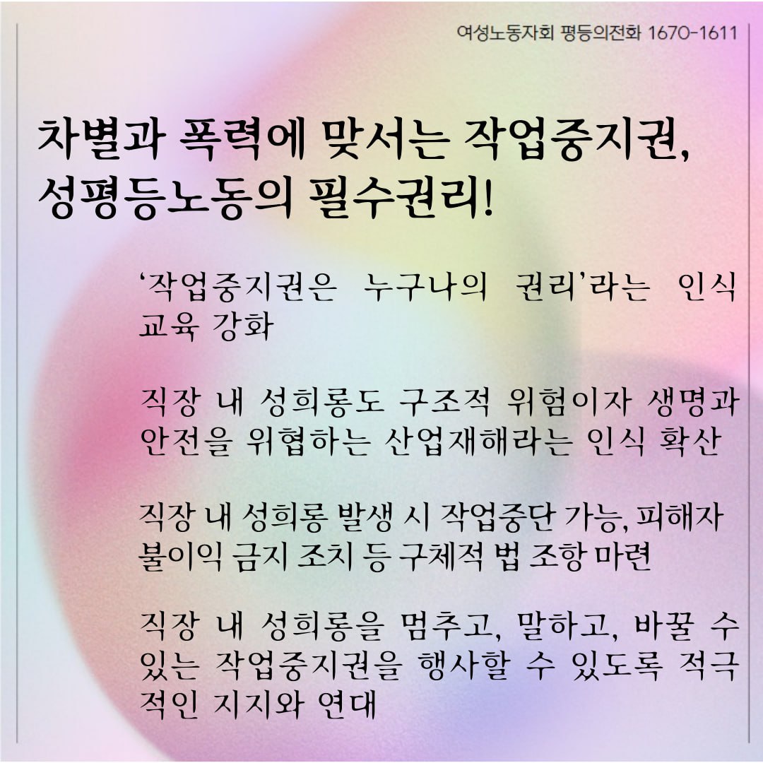 ⭐ 차별과 폭력에 맞서는 작업중지권, 성평등 노동의 필수 권리!