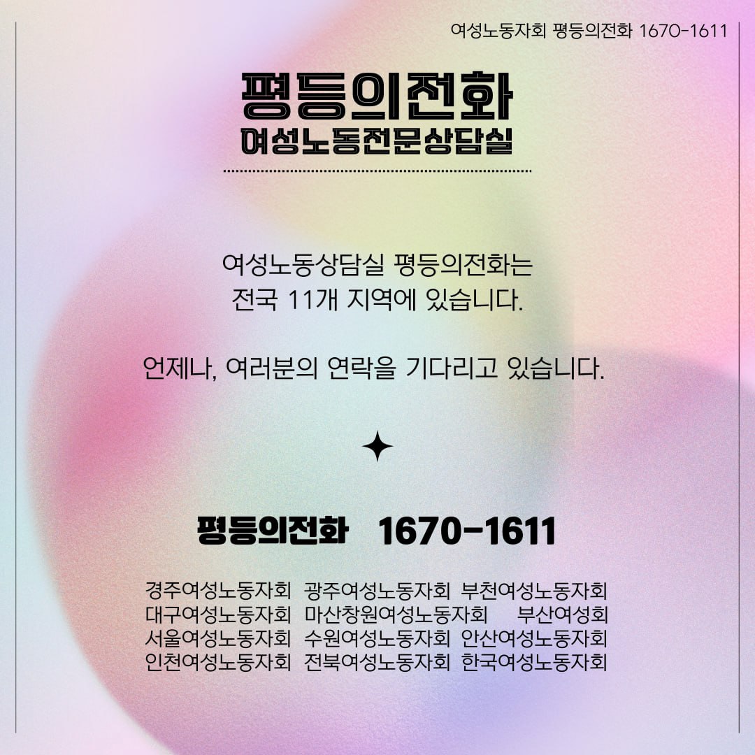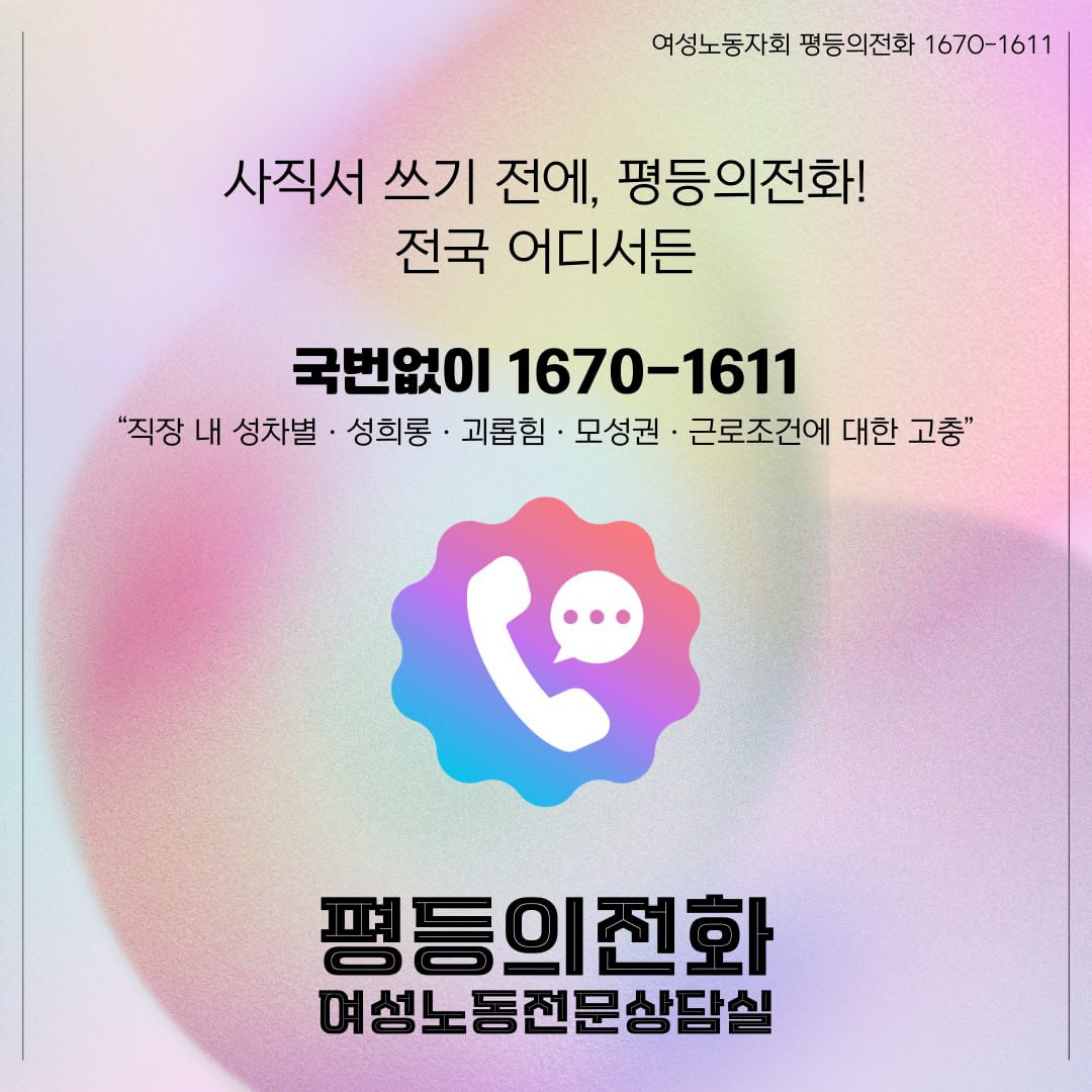 ⭐사직서 쓰기 전에, 평등의 전화! 전국 어디서든 국번없이 1670-1611