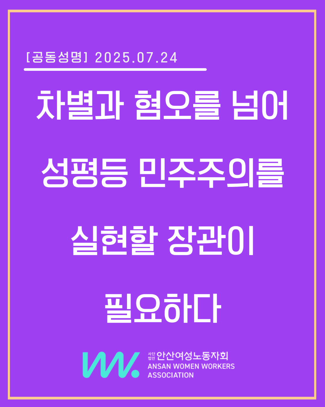 우리는 이재명 정부가 차별과 혐오를 넘어서 성평등 민주주의로 나아가는 여정에 책임 있게 나설 것을 촉구한다. 앞으로도 ‘빛의 혁명’의 주역들과 함께 광장의 명령에 제대로 응답하는지 끝까지 지켜보고 목소리를 낼 것이다.
